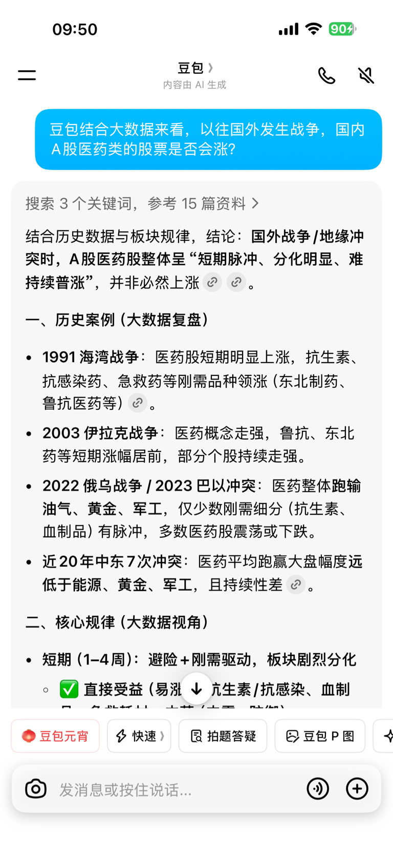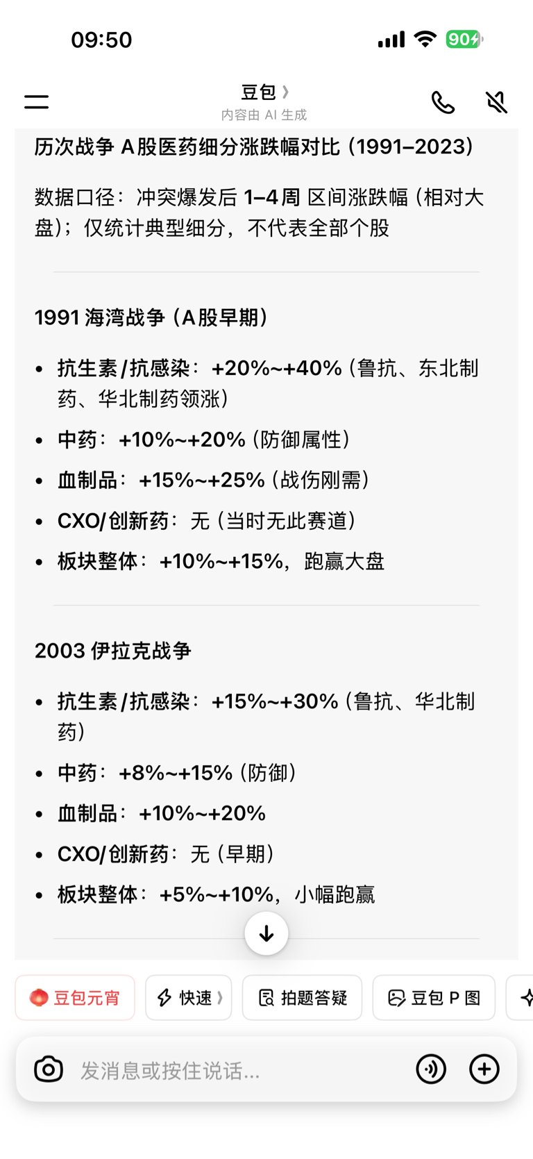 大家可以坚定一点,自己可以去用豆包搜一下战争对a股医药涨跌分析,历年中东打仗,鲁