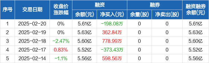 轻纺城:融资净偿还198.08万元,融资余额5.61亿元(02-20)