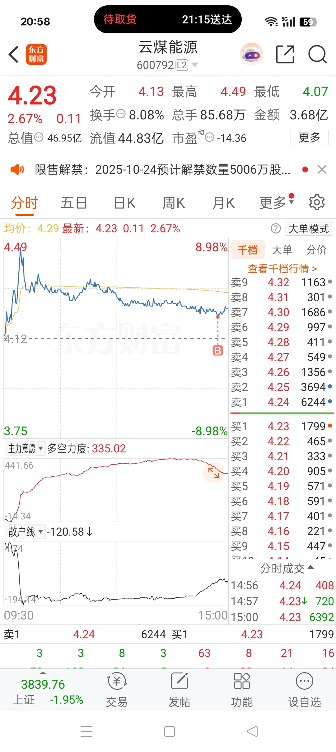 $云煤能源(SH600792)$ 来喽来喽,散户来报道