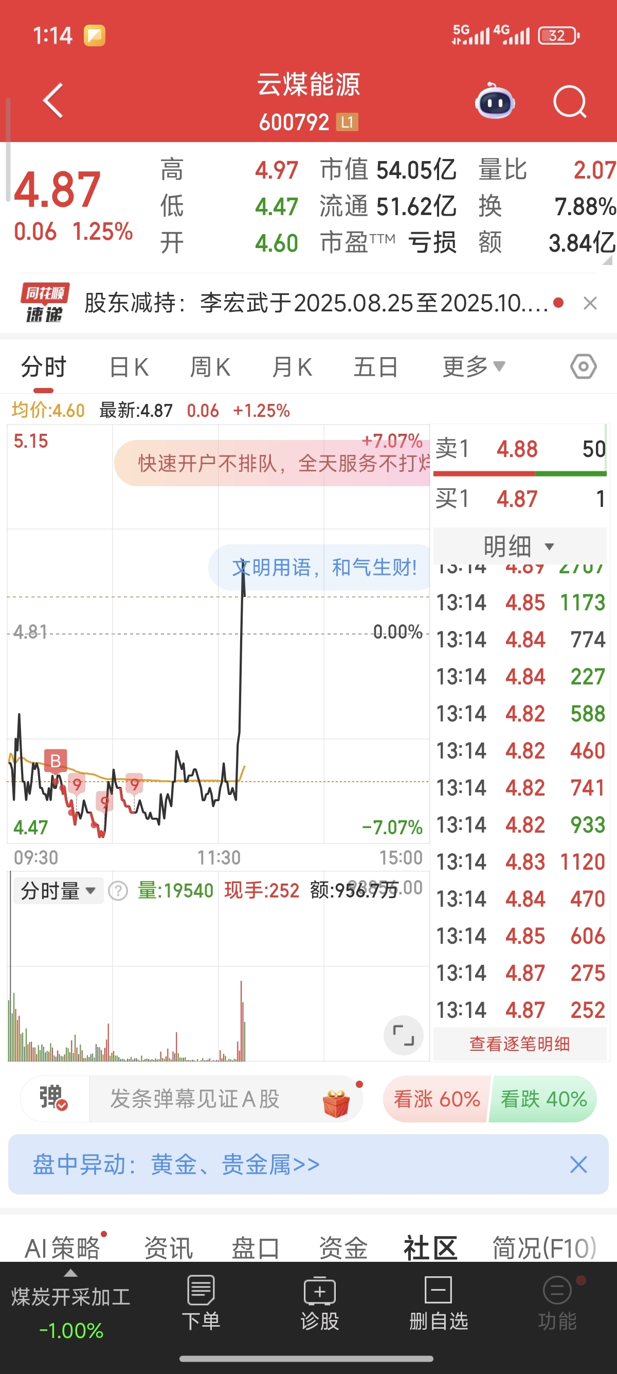 $云煤能源(SH600792)$ 我以为半山腰倒下了,不断的补