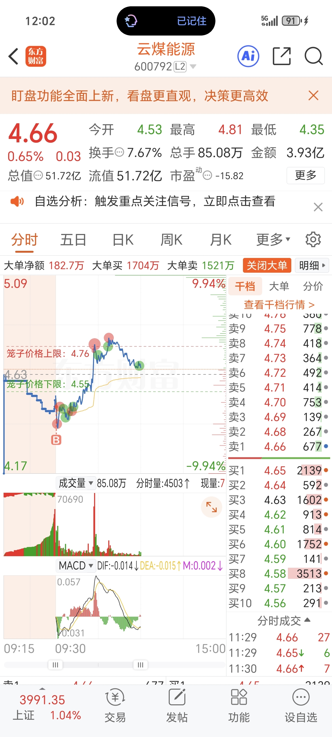 $云煤能源(SH600792)$ 小散户别臆想了,今天就是在洗盘。现在在把前面的量化洗出去,现在把周五的散户洗出去,然后破新高。逢低加仓锁仓就完了,少臆想。还拉高出货,哪有高?你在想什么呢?15亿的流通盘,主力手上有几个亿。主力要想拉涨停轻轻松松。跟着主力走