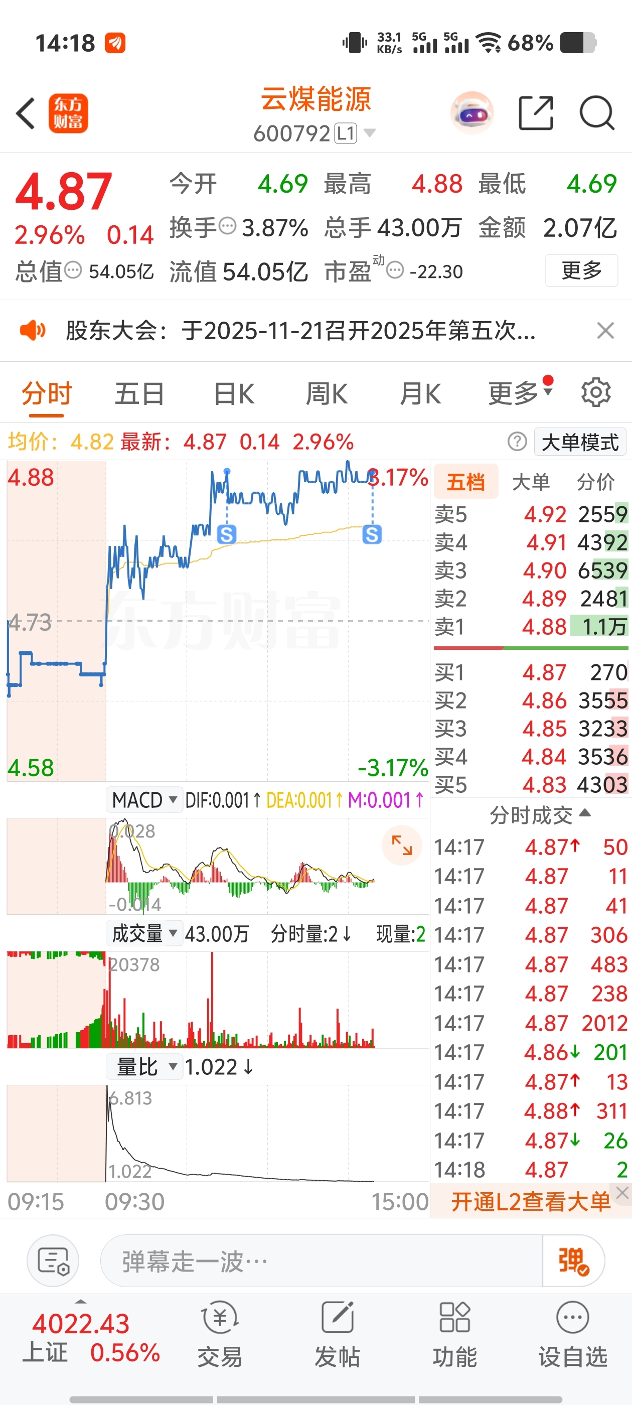 $云煤能源(SH600792)$ 我走了。主力你拉涨停吧