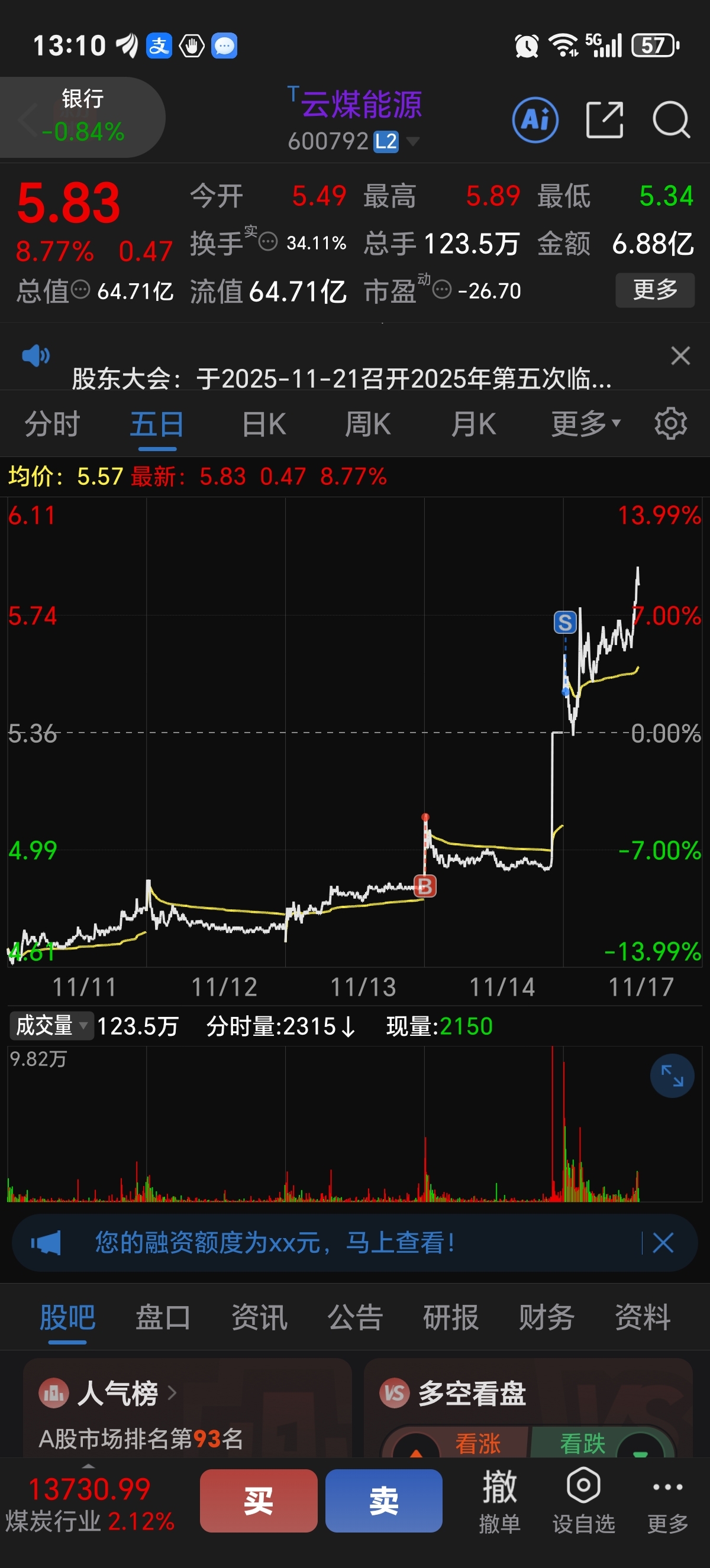 $云煤能源(SH600792)$ 这条路是不让人走了,无论如何要把我甩掉
