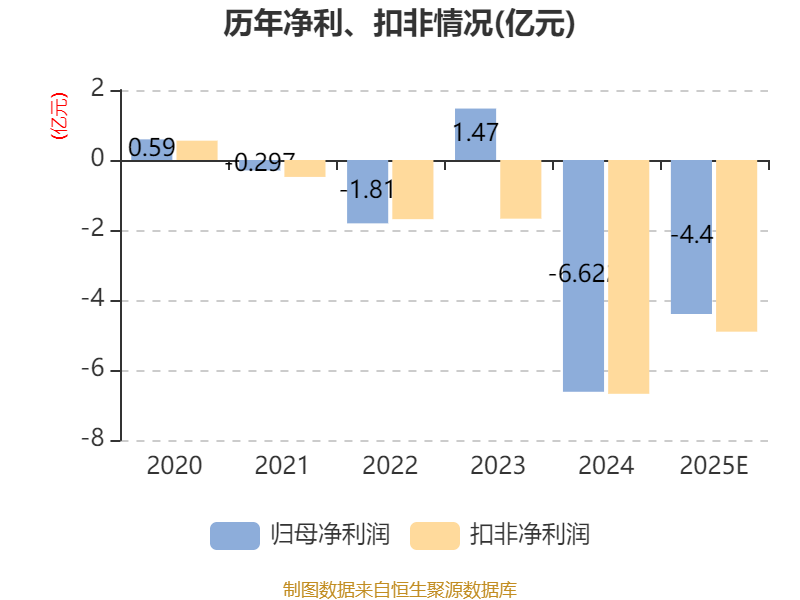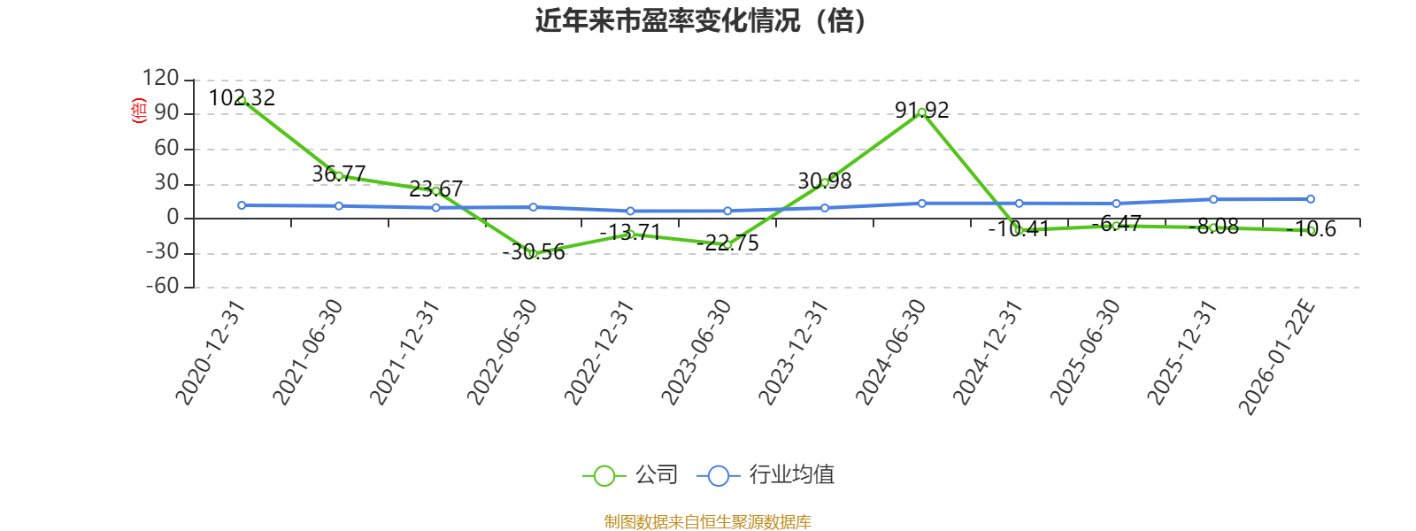 中证智能财讯云煤能源(600792)1月22日晚间披露2025年度业绩预告,预计2025年归母净利润亏损4.1亿元至4.7亿元,上年同期亏损6.62亿元;扣非净利润亏损4.61亿元至5.21亿元,上年同期亏损6.68亿元。以最新收盘价计算,市净率(LF)约1.63倍,市销率(TTM)约0.85倍。