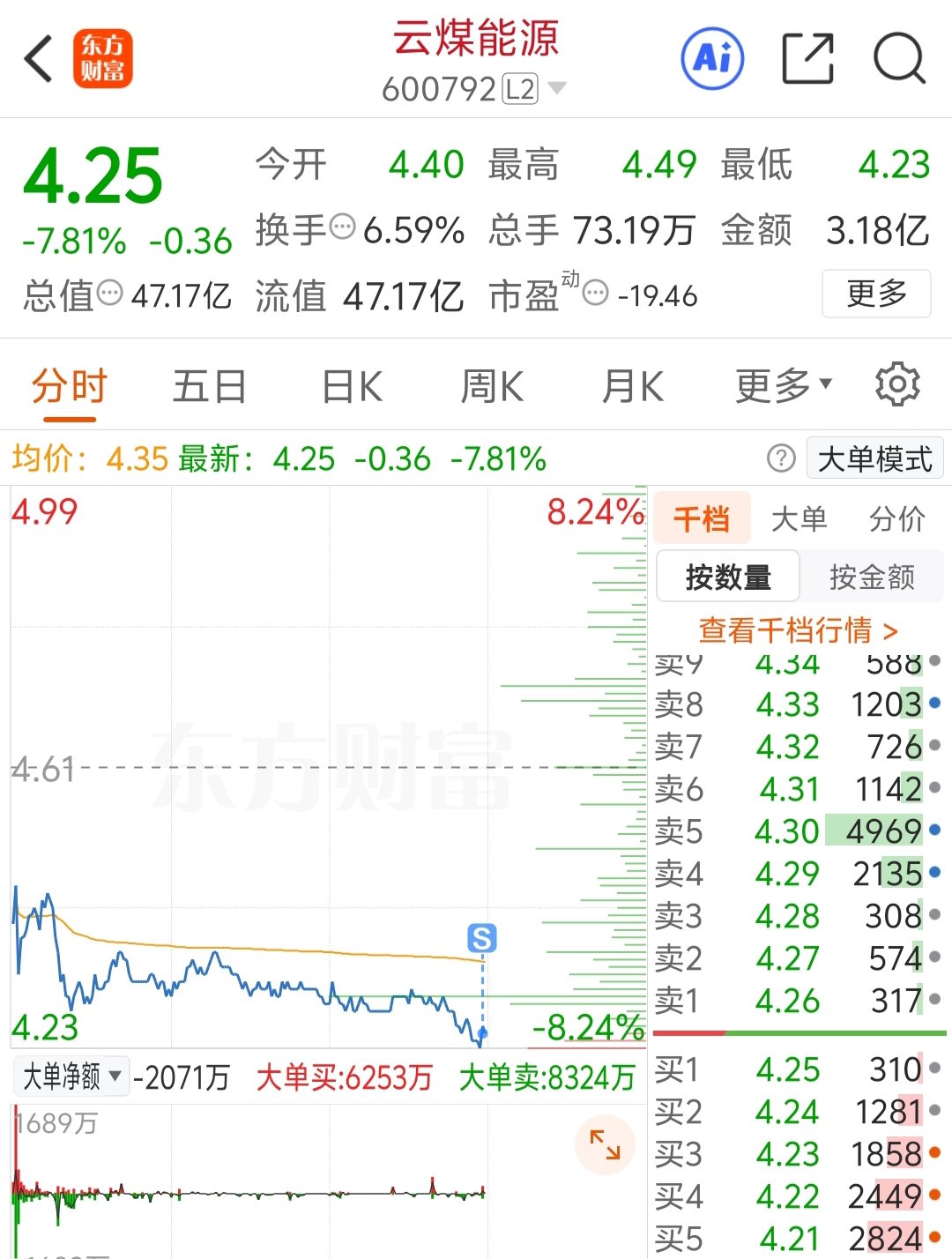 $云煤能源(SH600792)$ 周五板块大涨,涨停出货;今天板块大跌,没一点维护,先跌它6个点,再横盘。再见吧!