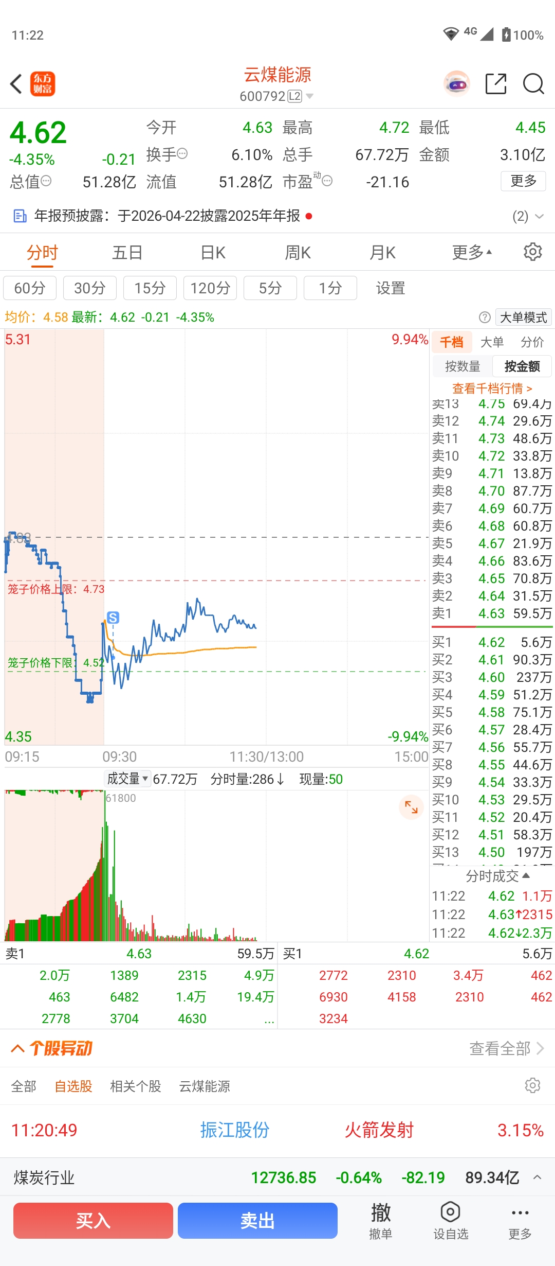$云煤能源(SH600792)$ 妥妥地韭菜,开盘后挂了4.72,竟然没成交