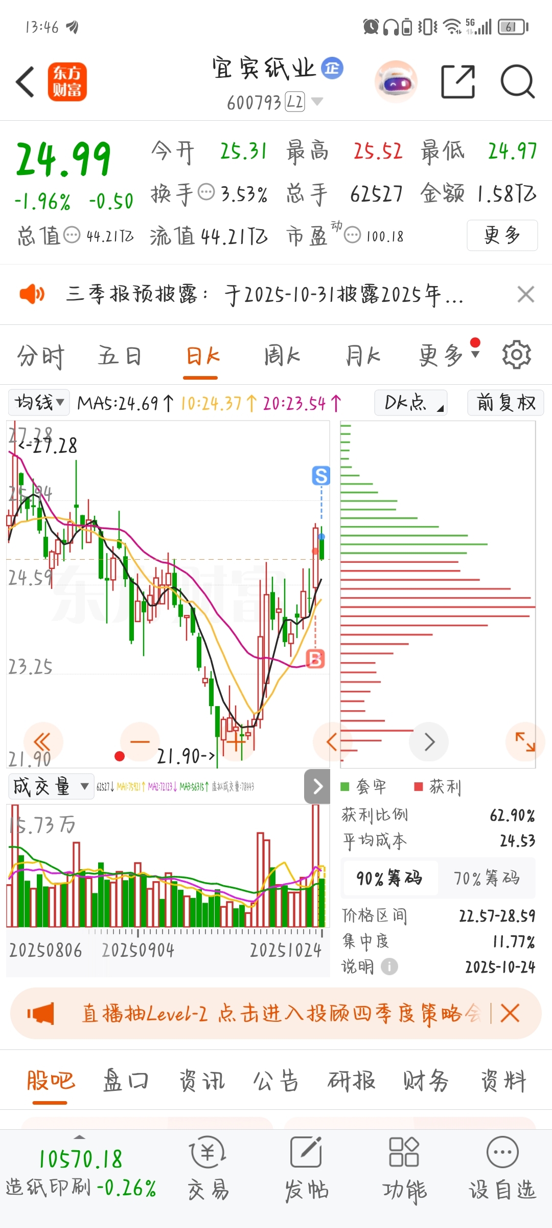 $宜宾纸业(SH600793)$ 占点小便宜,走了