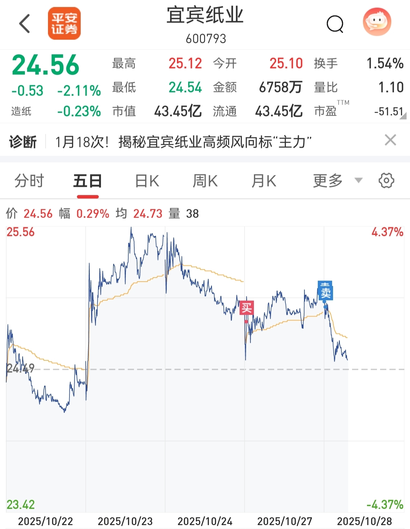 $宜宾纸业(SH600793)$ 昨天进的,赚了箱油钱就走了,留下的发财