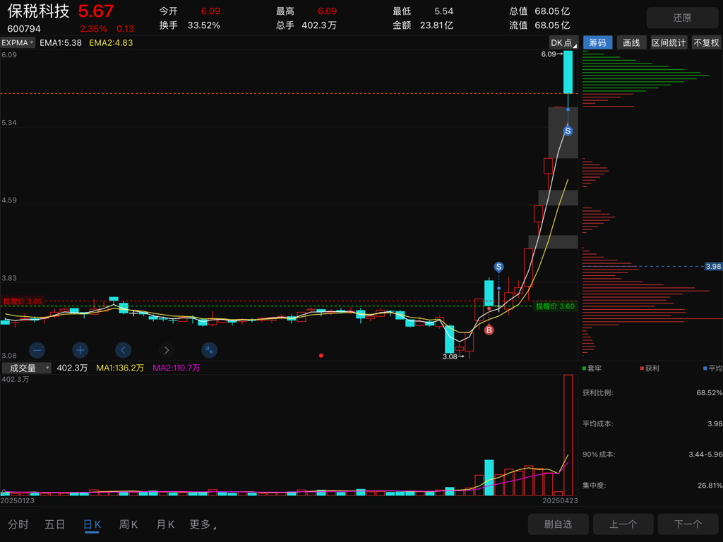 主力已跑完,下次要等它跌到3.75附近才能玩儿了