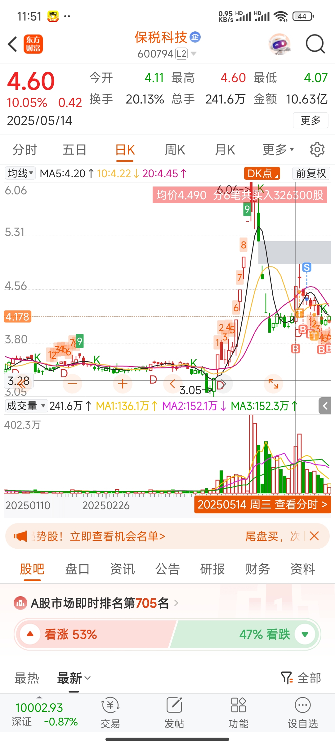 $保税科技(SH600794)$ 准备起飞,兄弟们