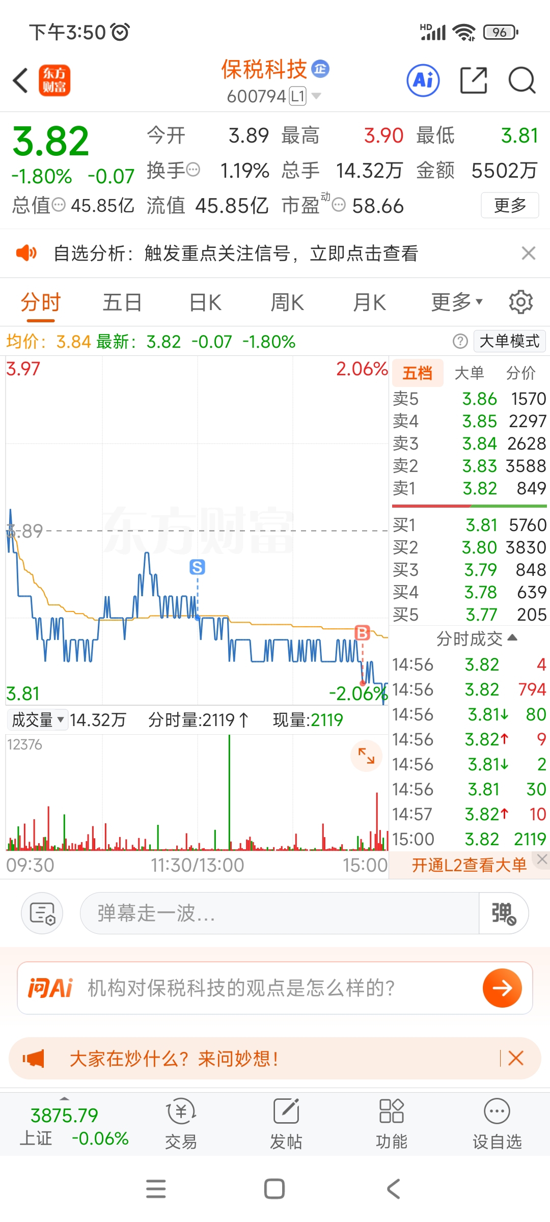 $保税科技(SH600794)$ 星尘也套了,获利盘彻底没有了,做个T降点成本