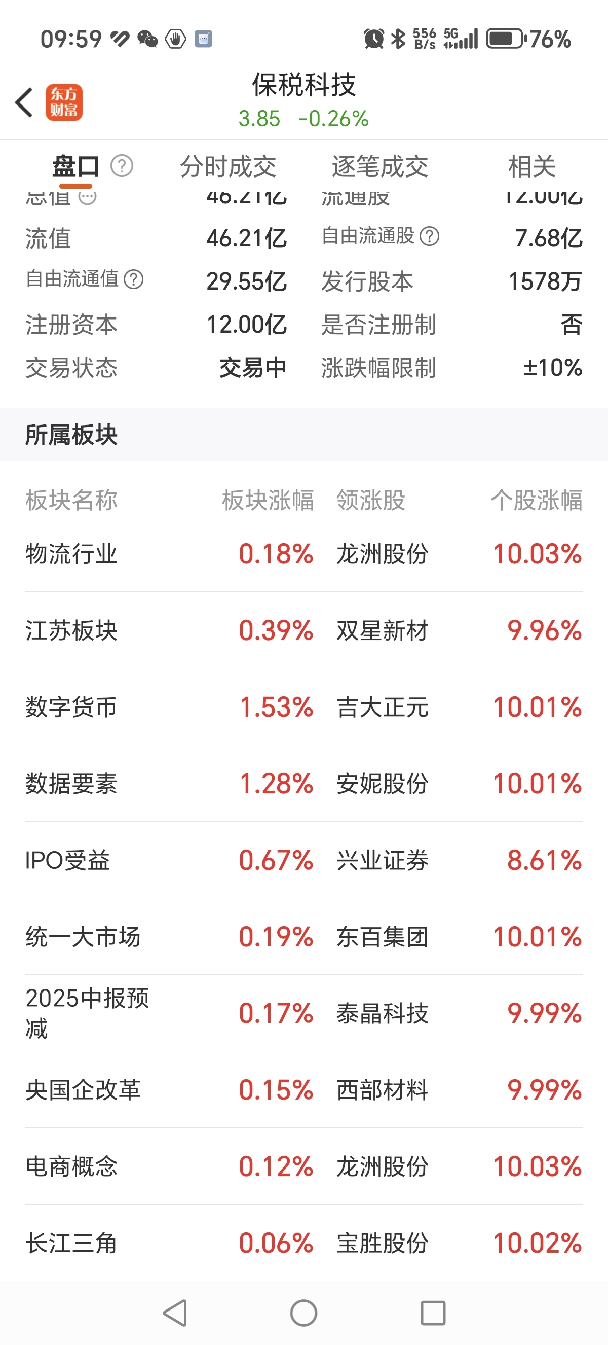 $保税科技(SH600794)$ 又是概念全红,哎!