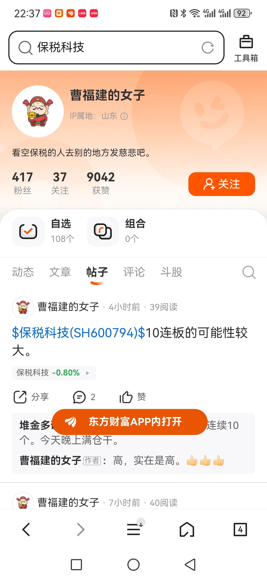 $保税科技(SH600794)$ 山东老头已经化身女子进行忽悠