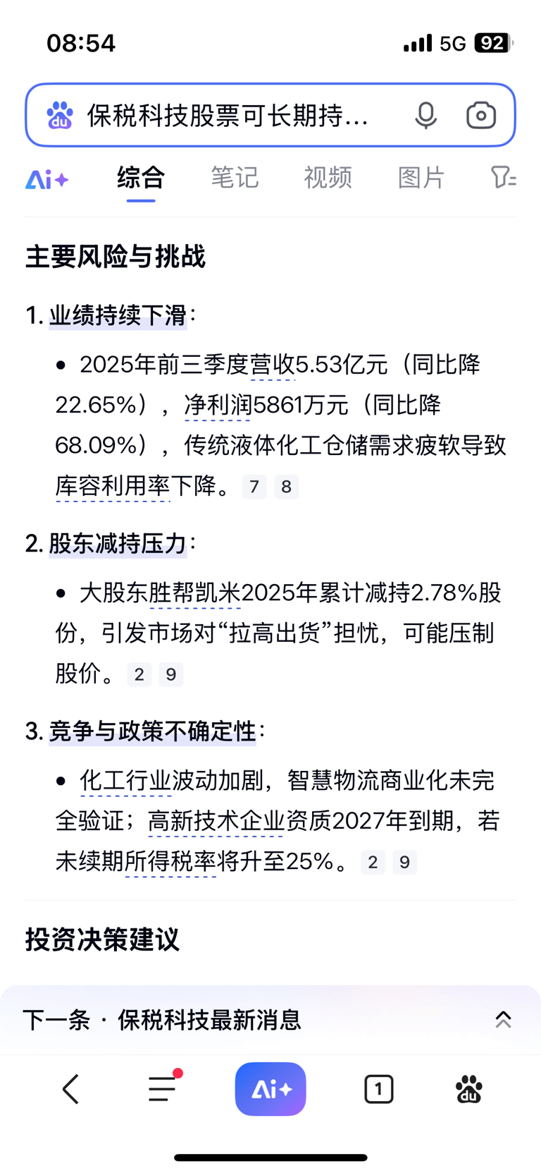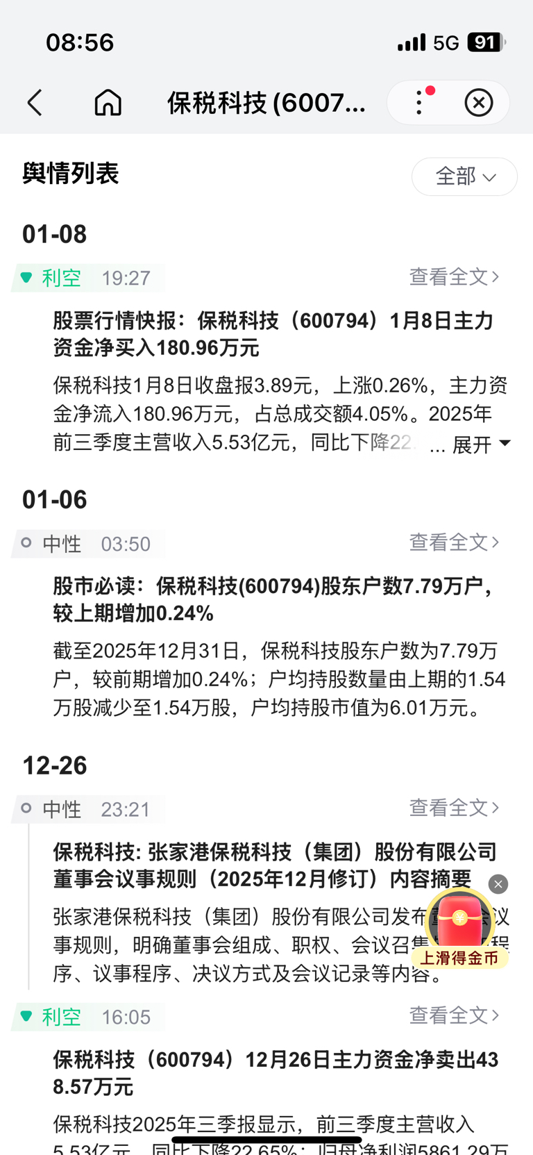 保税科技无机构看涨,建议近期减仓或空包
