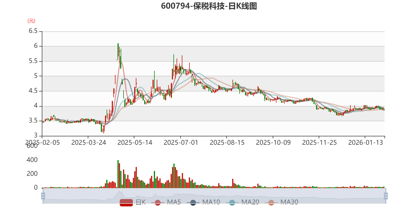 中证智能财讯保税科技(600794)1月30日晚间披露2025年度业绩预告,预计2025年归母净利润亏损8000万元至1.4亿元,上年同期盈利2.1亿元;扣非净利润亏损1.7亿元至2.3亿元,上年同期盈利1.81亿元。以最新收盘价计算,市净率(LF)约1.77倍,市销率(TTM)约6.29倍。