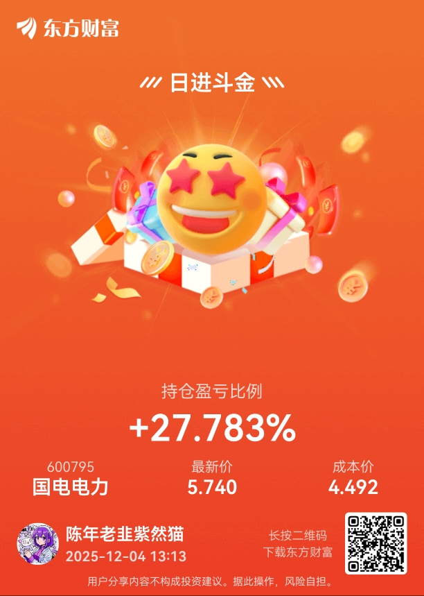 $国电电力(SH600795)$ 入市以来拿的最久,收益率最高的股票,指望它养老了