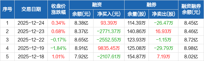 国电电力:融资净买入93.39万元,融资余额8.38亿元(12-24)
