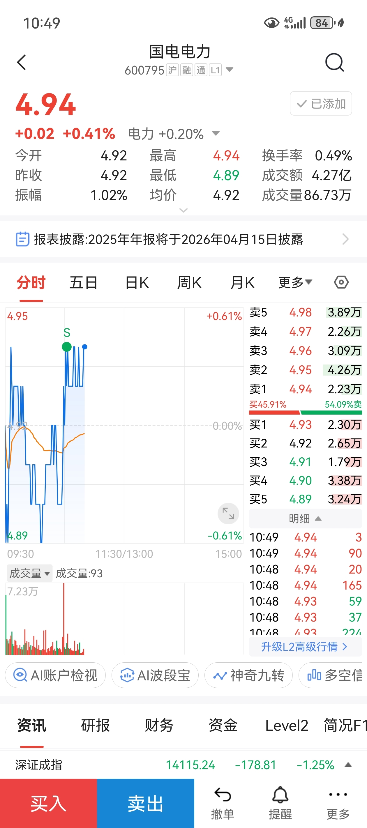 $国电电力(SH600795)$ 4.94全清给你了,你可以大涨了,让留下来的小伙伴们发大财