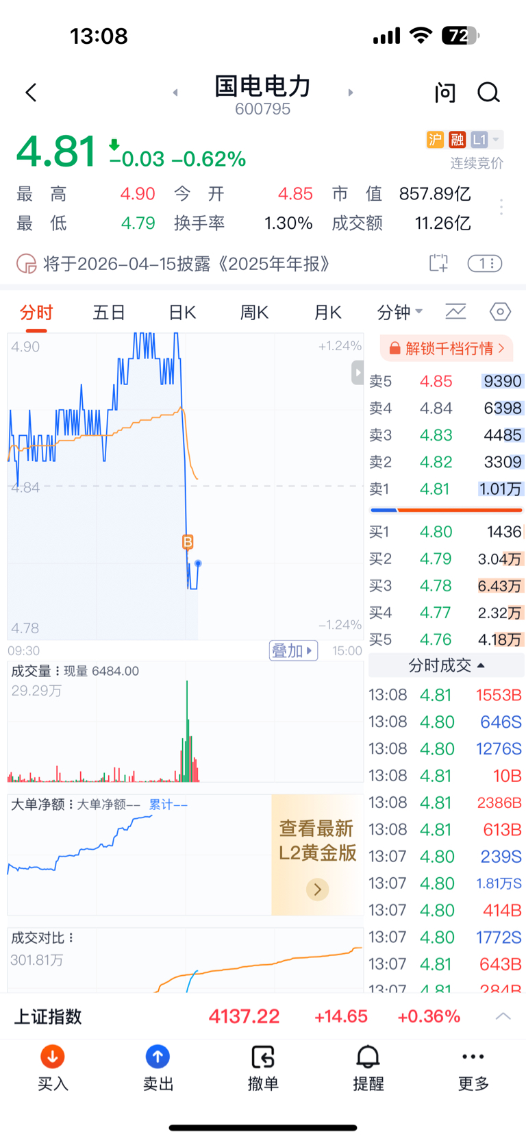 $国电电力(SH600795)$ 每天等你跳水再买