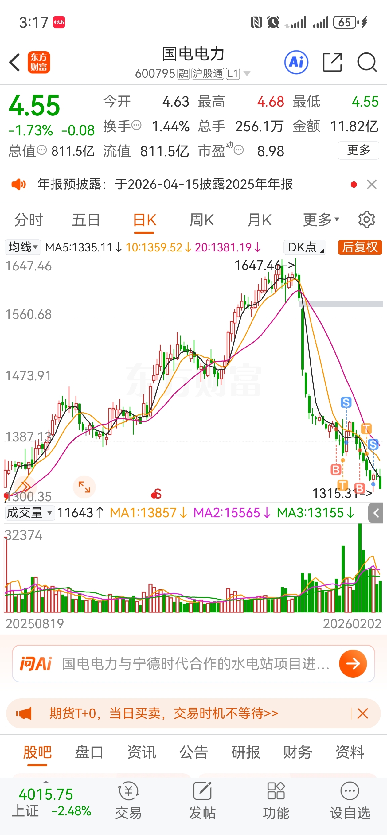 $国电电力(SH600795)$ 割肉了,1000一下再来看看。