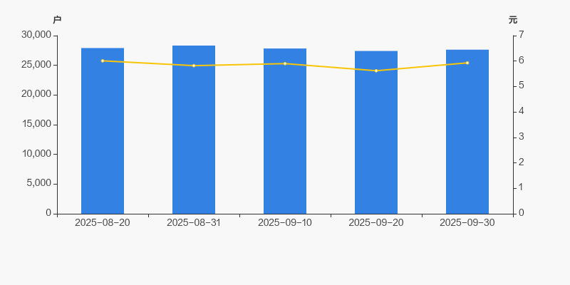 2025年8月20日至今,公司股东户数有所下降,区间跌幅为0.98%。2025年8月20日至2025年9月30日区间股价下降1.33%。