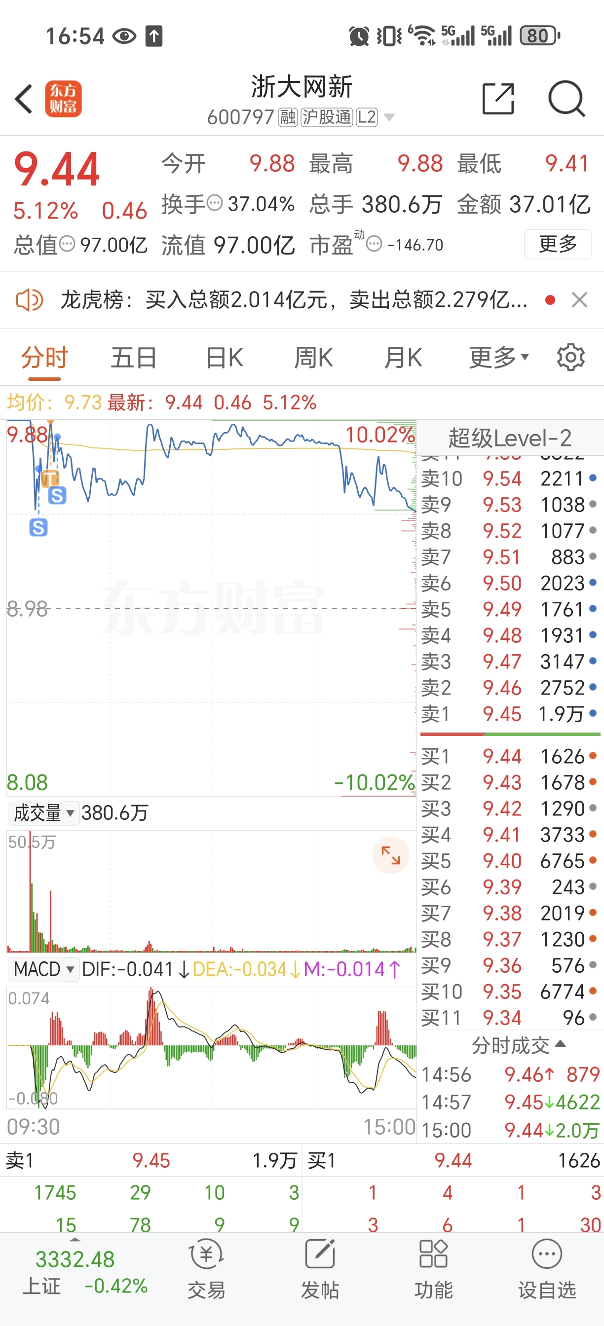 $浙大网新(SH600797)$ 历史天量,但是逻辑还在,明天看下承接在决定要不要补仓