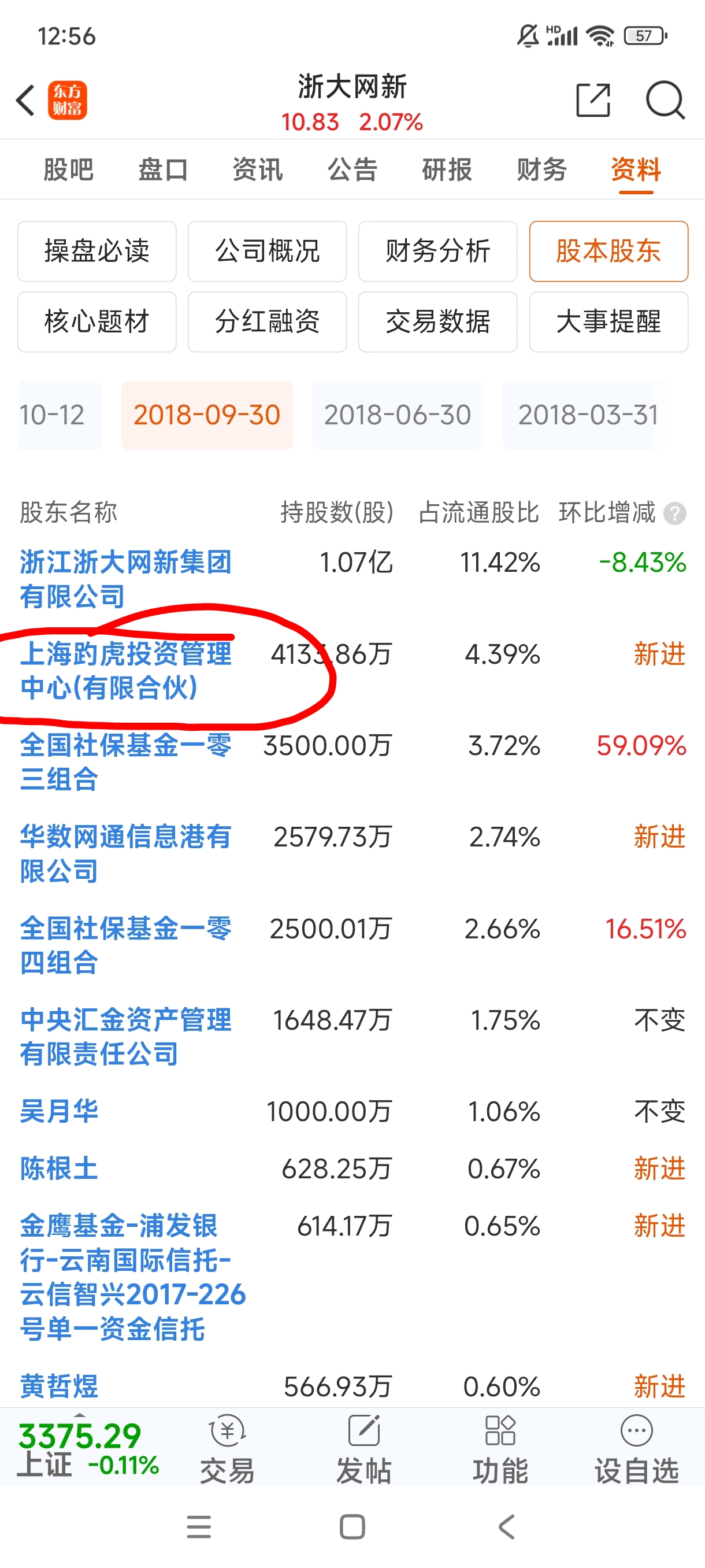 第三大股东是啥来头?2018年三季度进来的平均成本9块钱附近,上海趵虎投资管理中