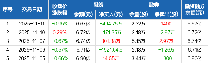 浙大网新:融资净偿还494.75万元,融资余额6.67亿元(11-11)
