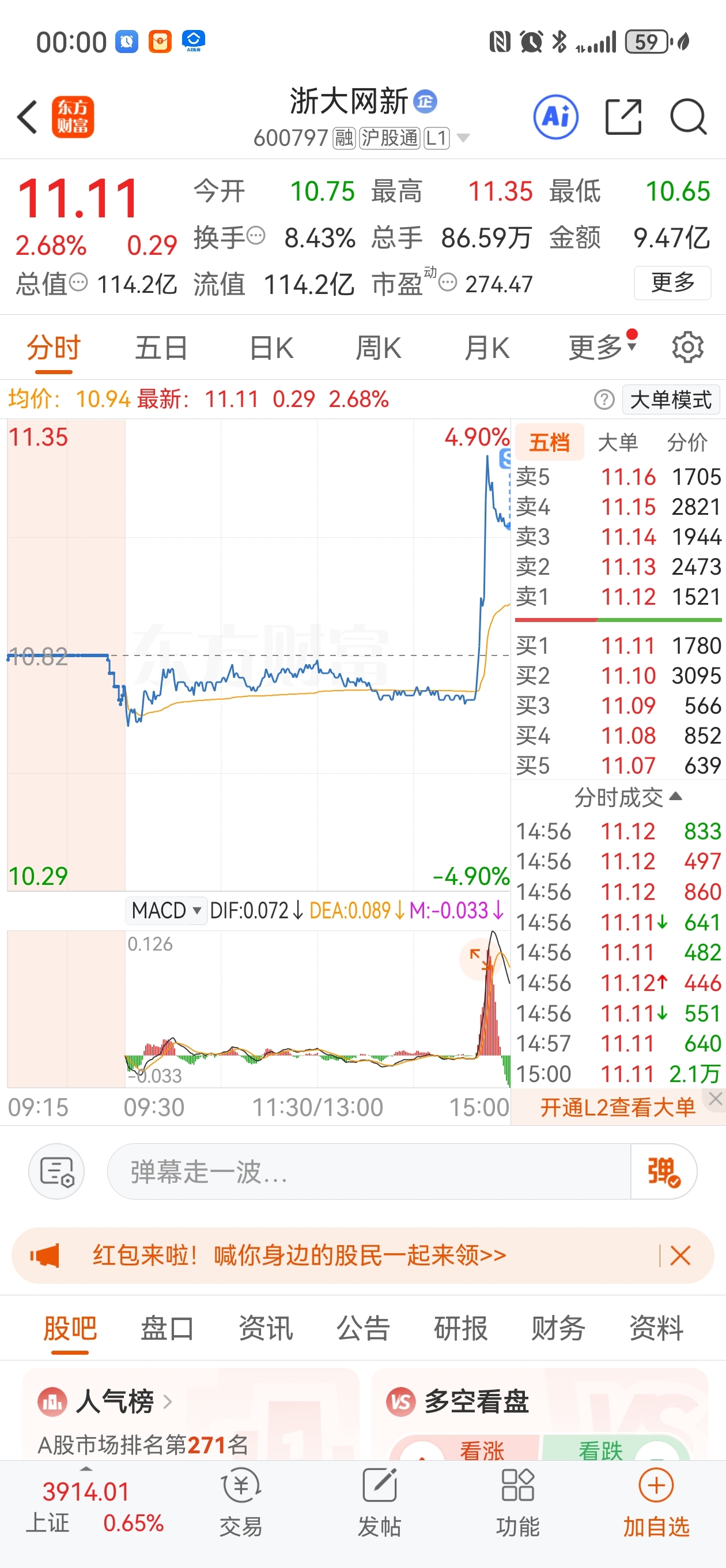 $浙大网新(SH600797)$ 小弟已走,留下发财