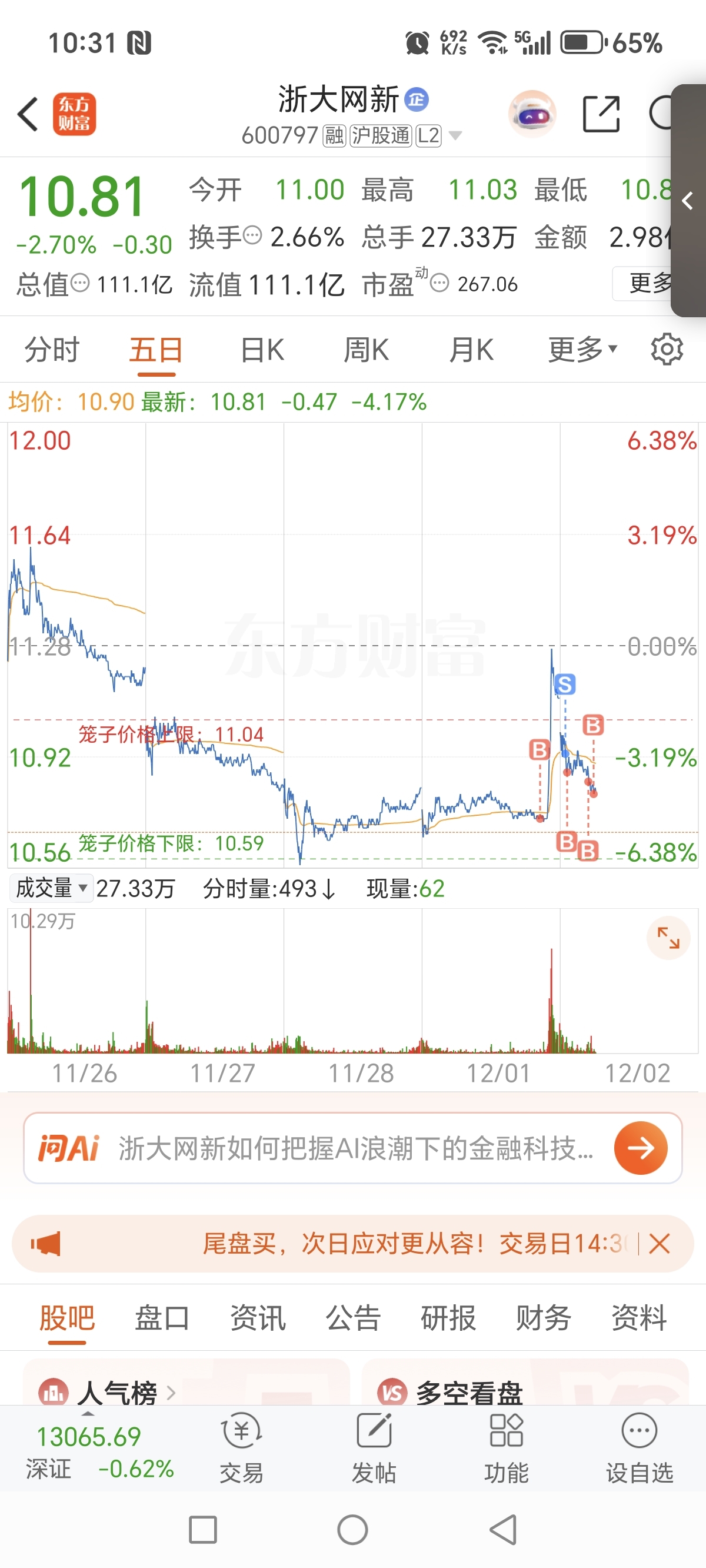 $浙大网新(SH600797)$ 想跌就跌吧,一点一点都把你买回来