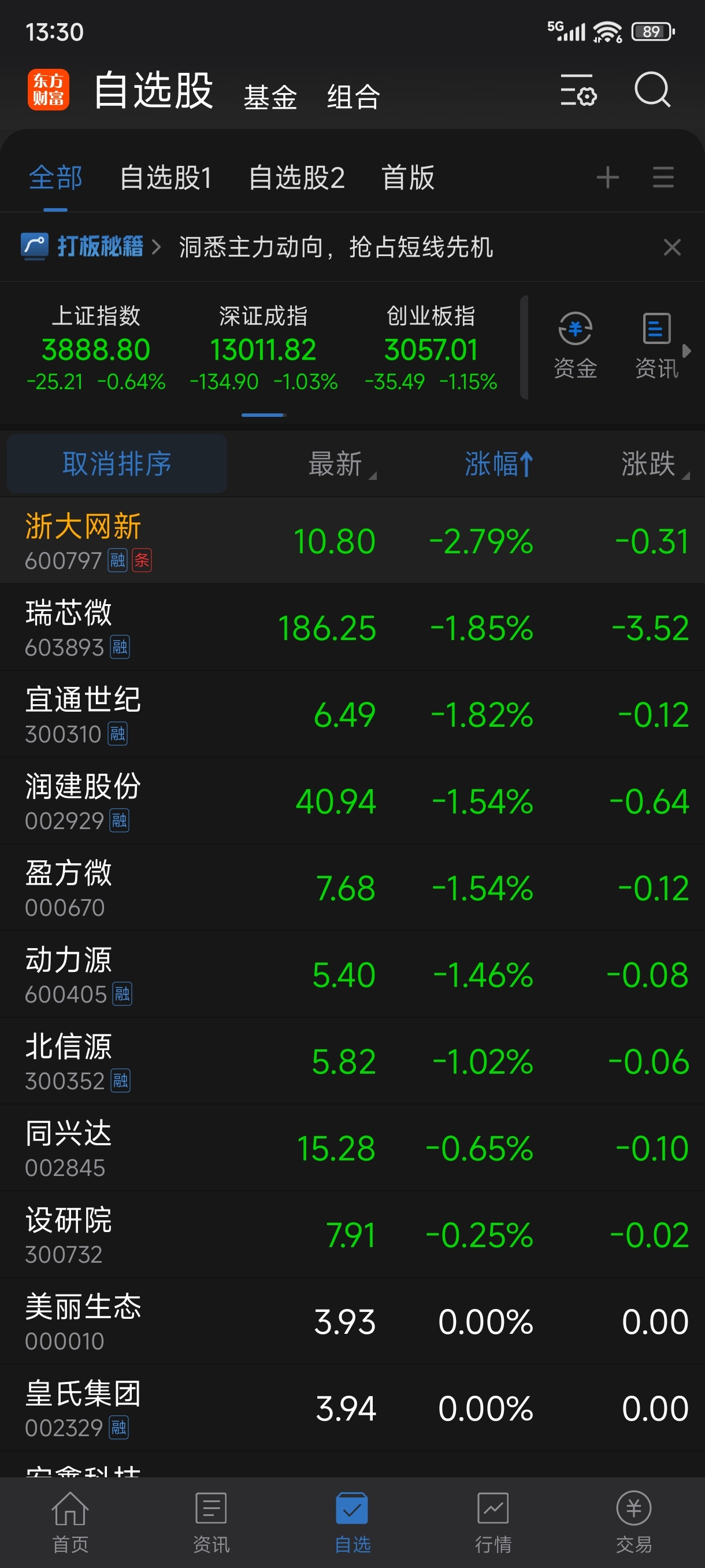 $浙大网新(SH600797)$ 自选股跌幅第一
