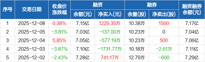 浙大网新:融资净买入1229.35万元,融资余额7.15亿元(12-08)
