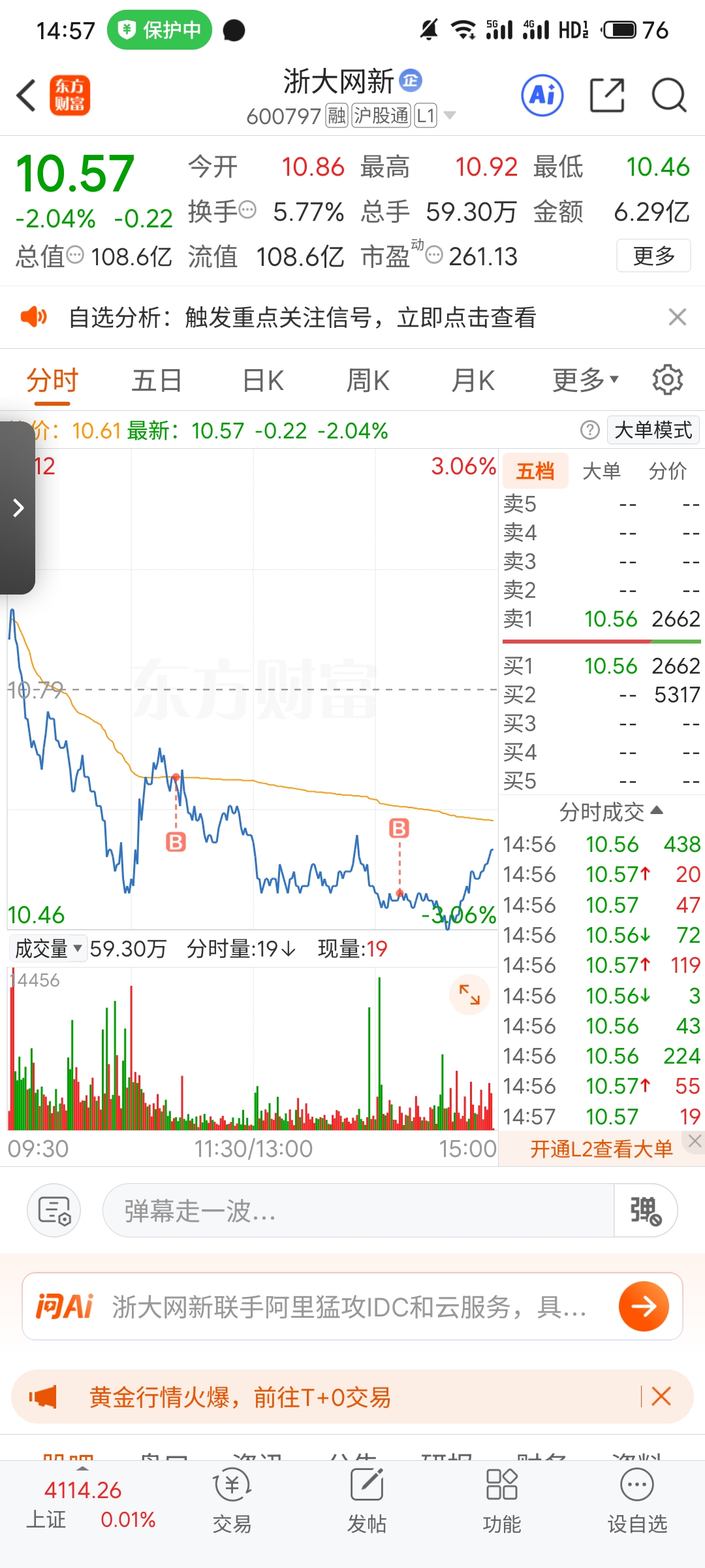 上下午分时分段共进10万股持续看多,做多浙大网新,不为所动