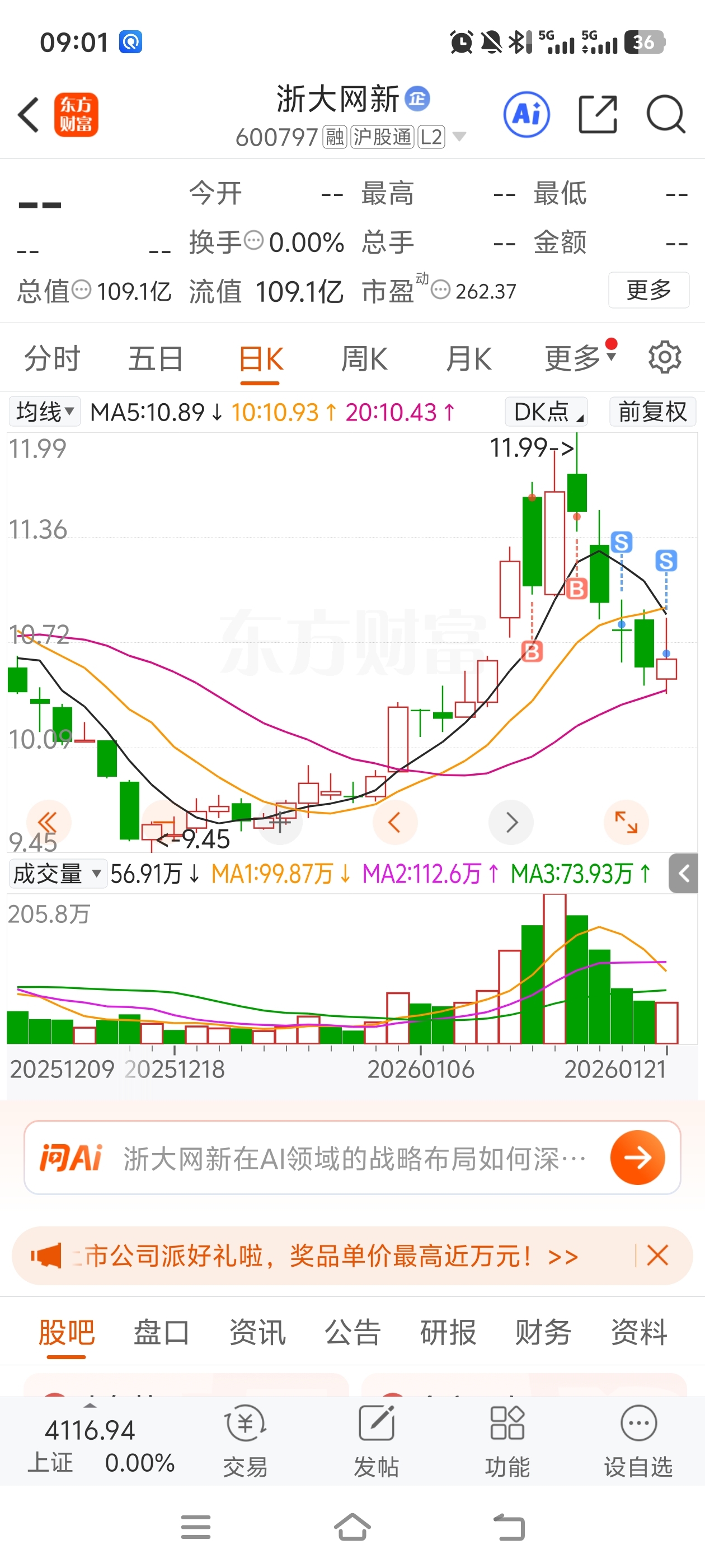 $浙大网新(SH600797)$ 亏了15个点割完了,今日必涨停