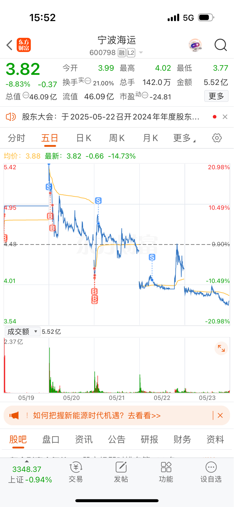 $宁波海运(SH600798)$ 瞎玩赚了6k跑路了,昨天要是格局到下午再跑本来能赚1w2的