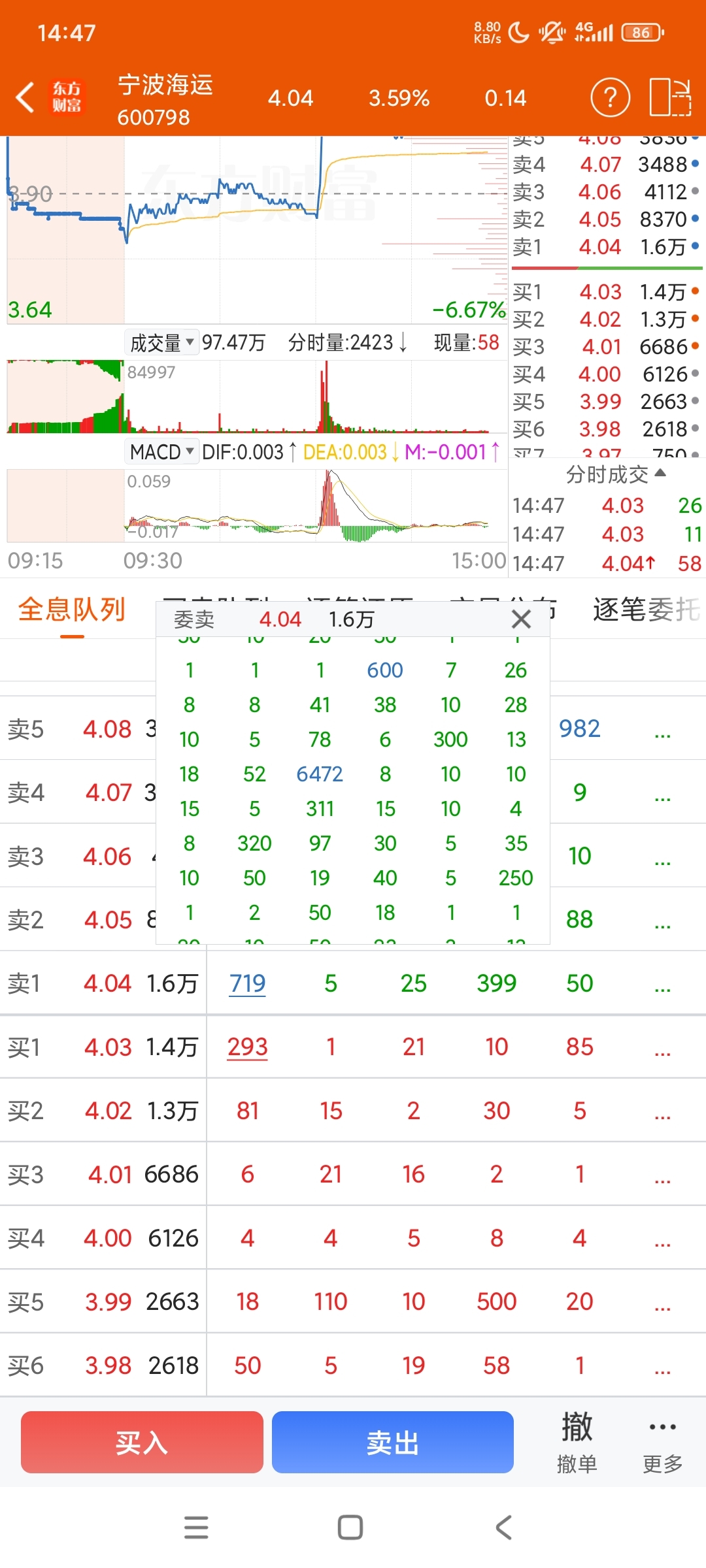 $宁波海运(SH600798)$ 6000的单宣告今天朱丽看空
