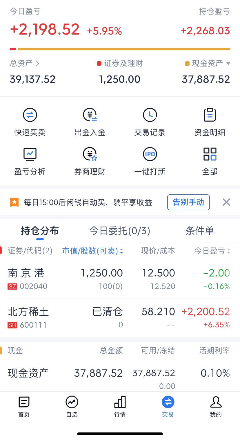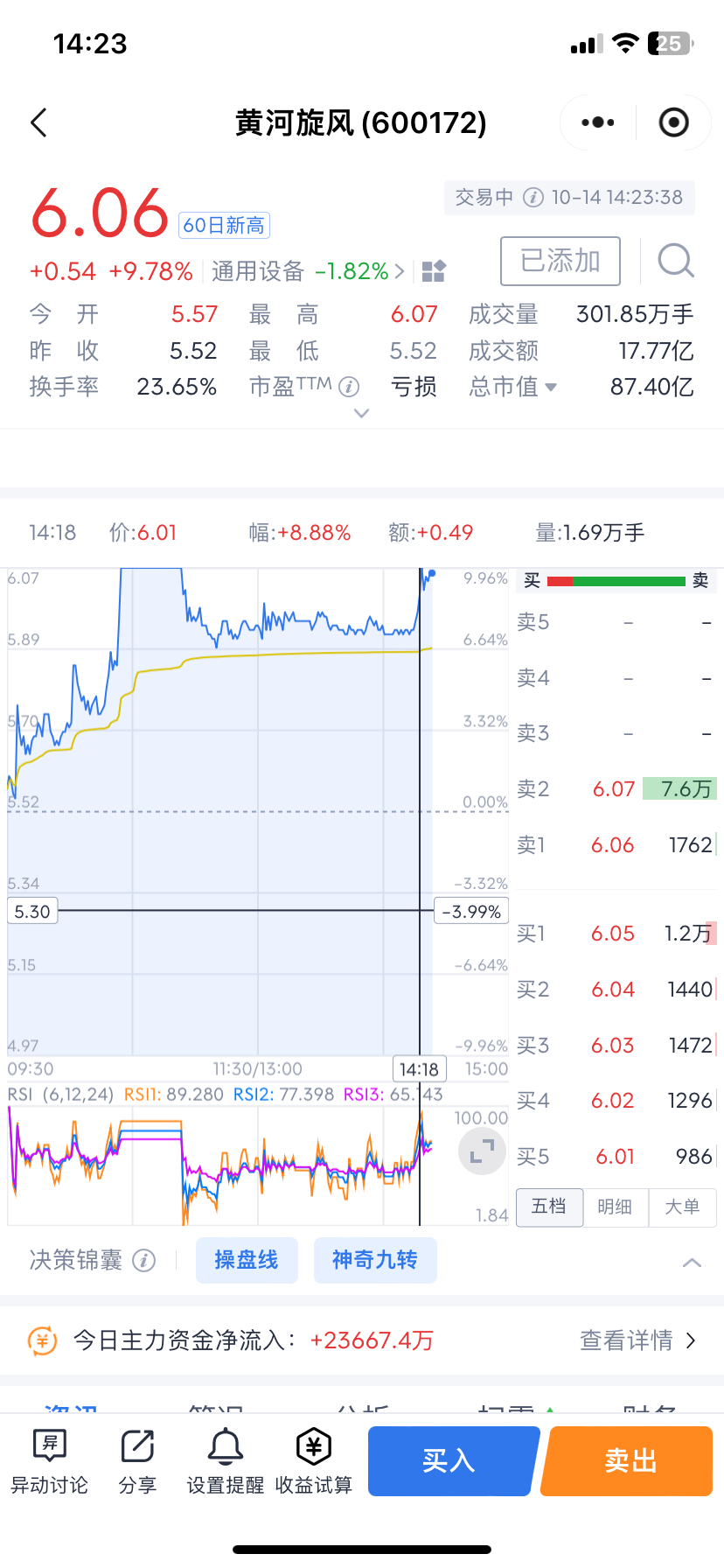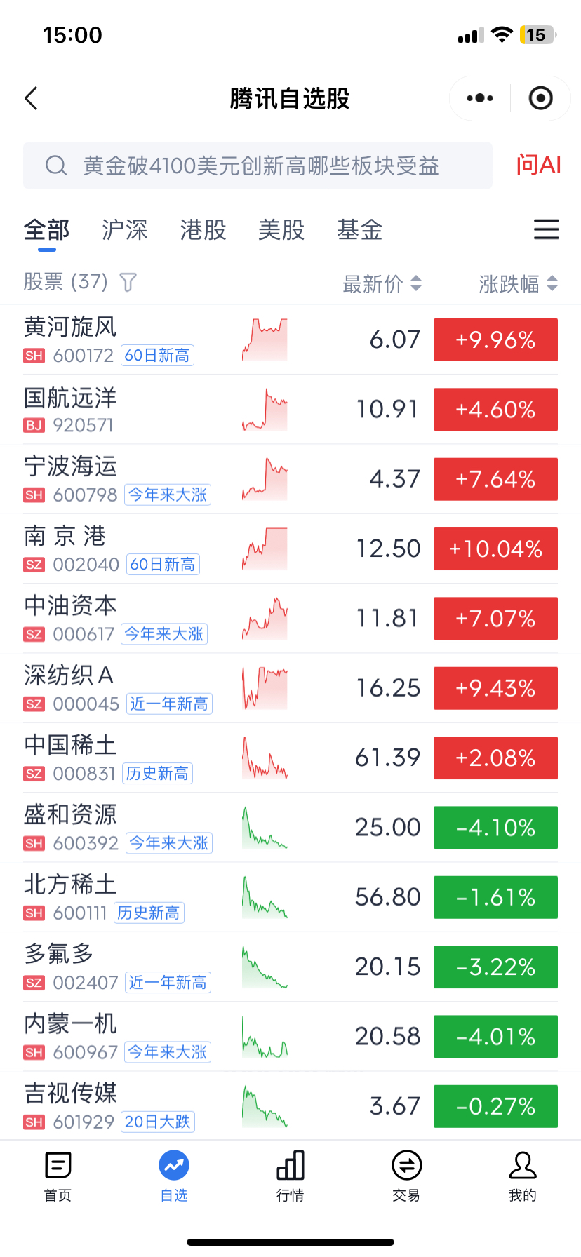$宁波海运(SH600798)$ 10月14日明天估计又是一碗大面、服了自己、一手好牌打得稀巴烂!早上6.4个点出了北方稀土,加了几个自选、一直拿不定要进那个,最后12.47满仓选择了进南京港、回头一看、才成交了100股就涨停了、后面在黄河旋风6.01和宁波海运6.39、竞选择了你