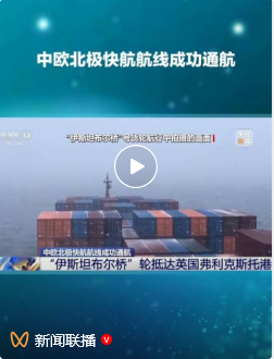 宁波海运:“伊斯坦布尔桥“轮9月23日从舟山启航,当地时间13日晚抵达英国。相较好望角航线50天左右、苏伊士运河40天左右,以及中欧班列约25天的运输时间,中欧北极快航航线本次仅用20天就成功抵达欧洲。