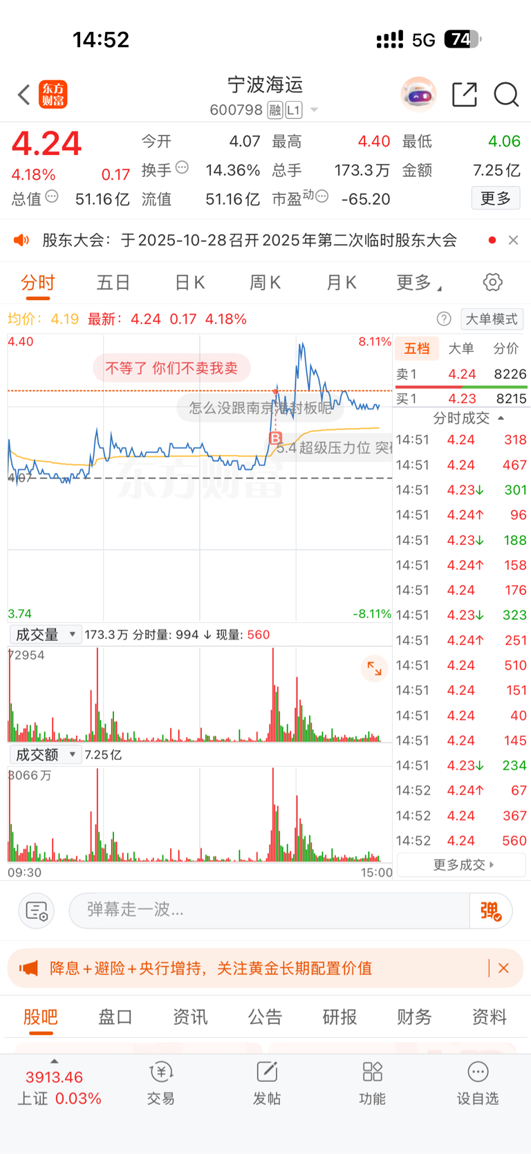 $宁波海运(SH600798)$ 瑟瑟发抖啊,跟着万手哥进来的,结果被挂住了