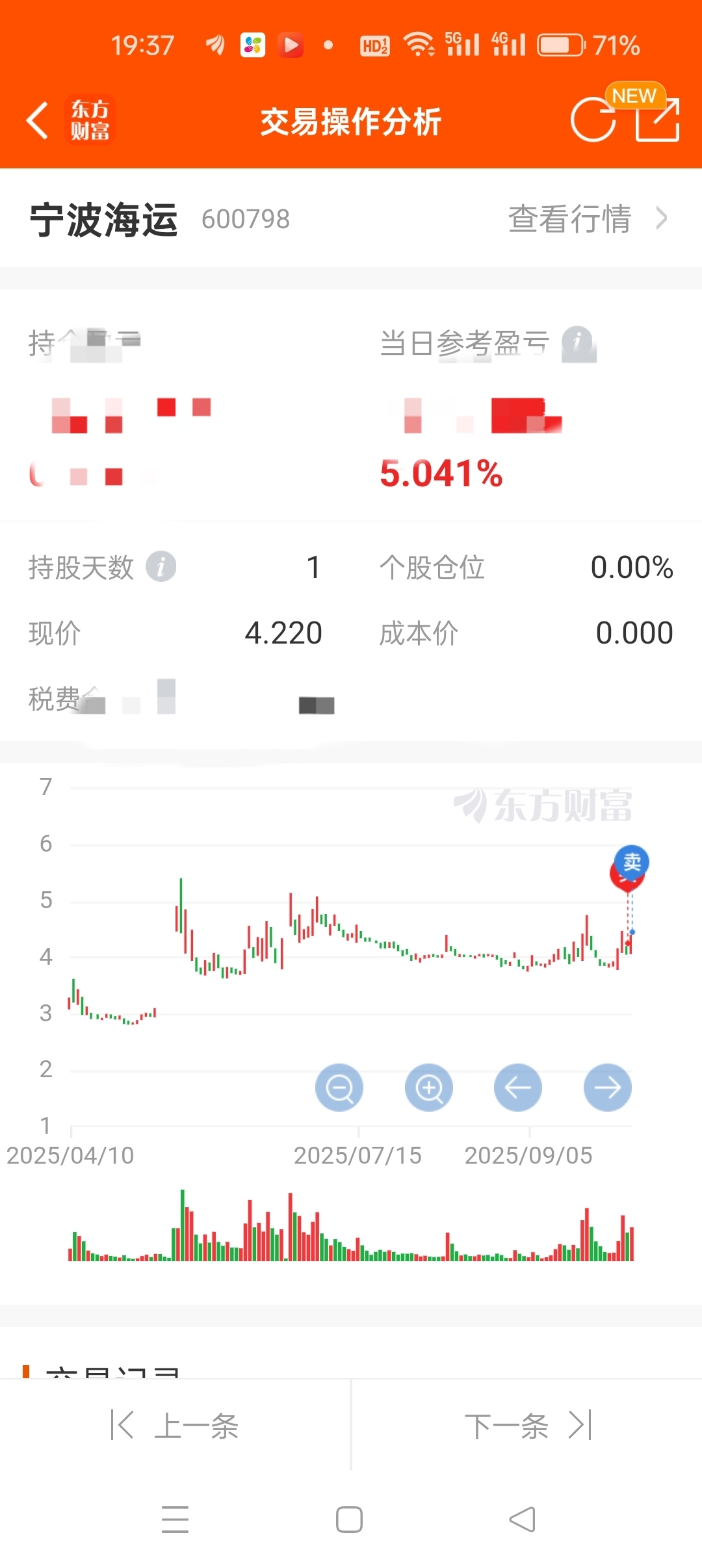 $宁波海运(SH600798)$ 昨天买,今天卖,战战兢兢5个多点,落袋为安!感谢主力