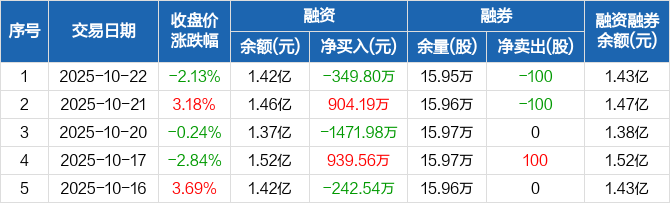 宁波海运:融资净偿还349.8万元,融资余额1.42亿元(10-22)