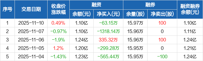 宁波海运:融资净偿还63.15万元,融资余额1.1亿元(11-10)