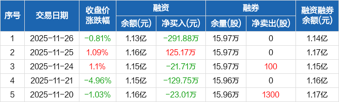 宁波海运:融资净偿还291.88万元,融资余额1.13亿元(11-26)