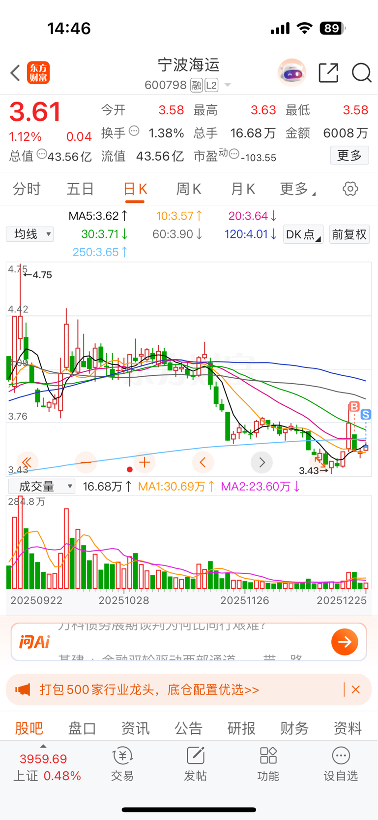 $宁波海运(SH600798)$ 撤了,留下的发财,呆了两天,挣一丢丢