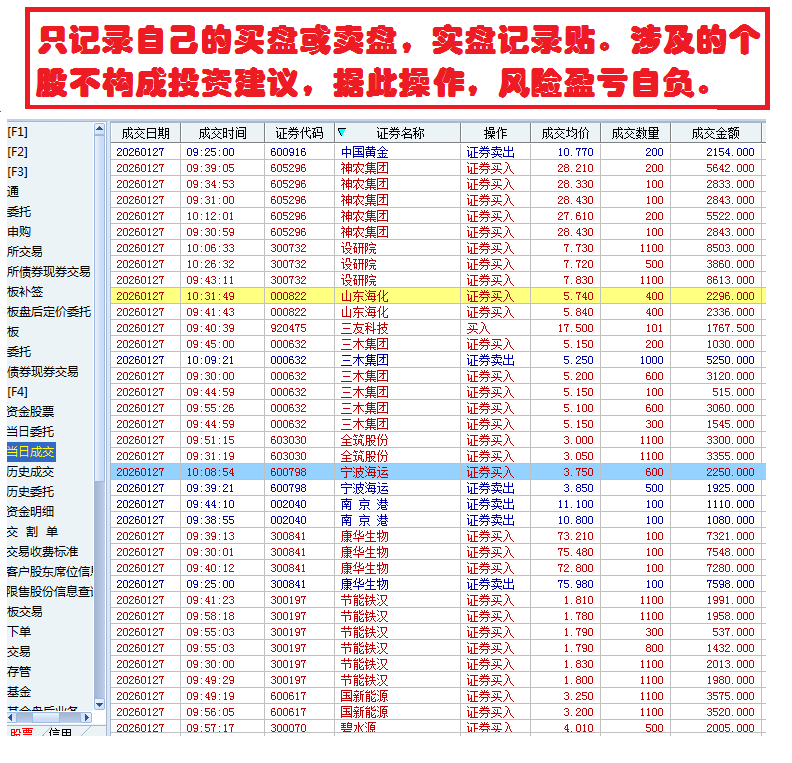 2026-1-27【4.55下盈利分批买卖做下差价,本金安全第一】