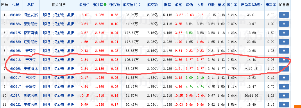 真正的兄弟,同一个娘:宁波,同一个价格:3.84,同样涨幅