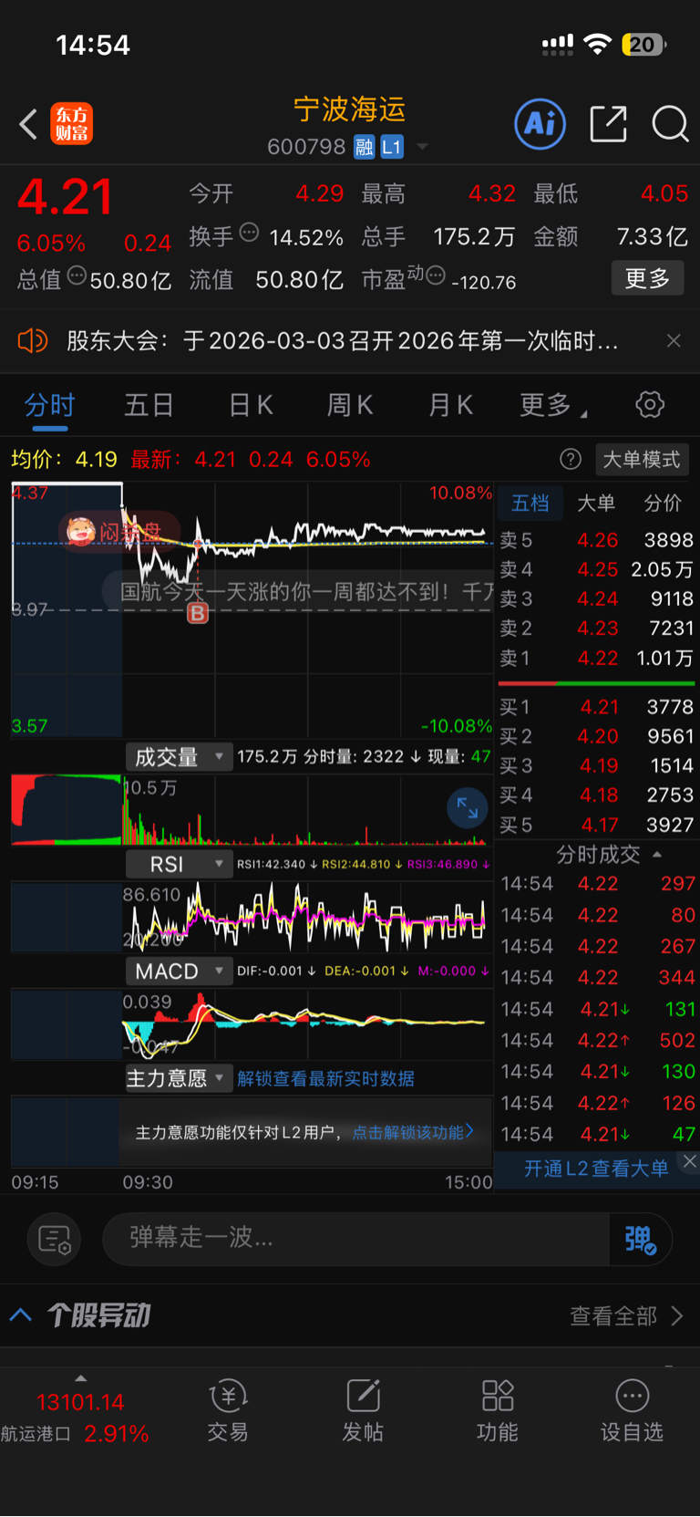 $宁波海运(SH600798)$ 控一天了,后续看涨,耐心持股
