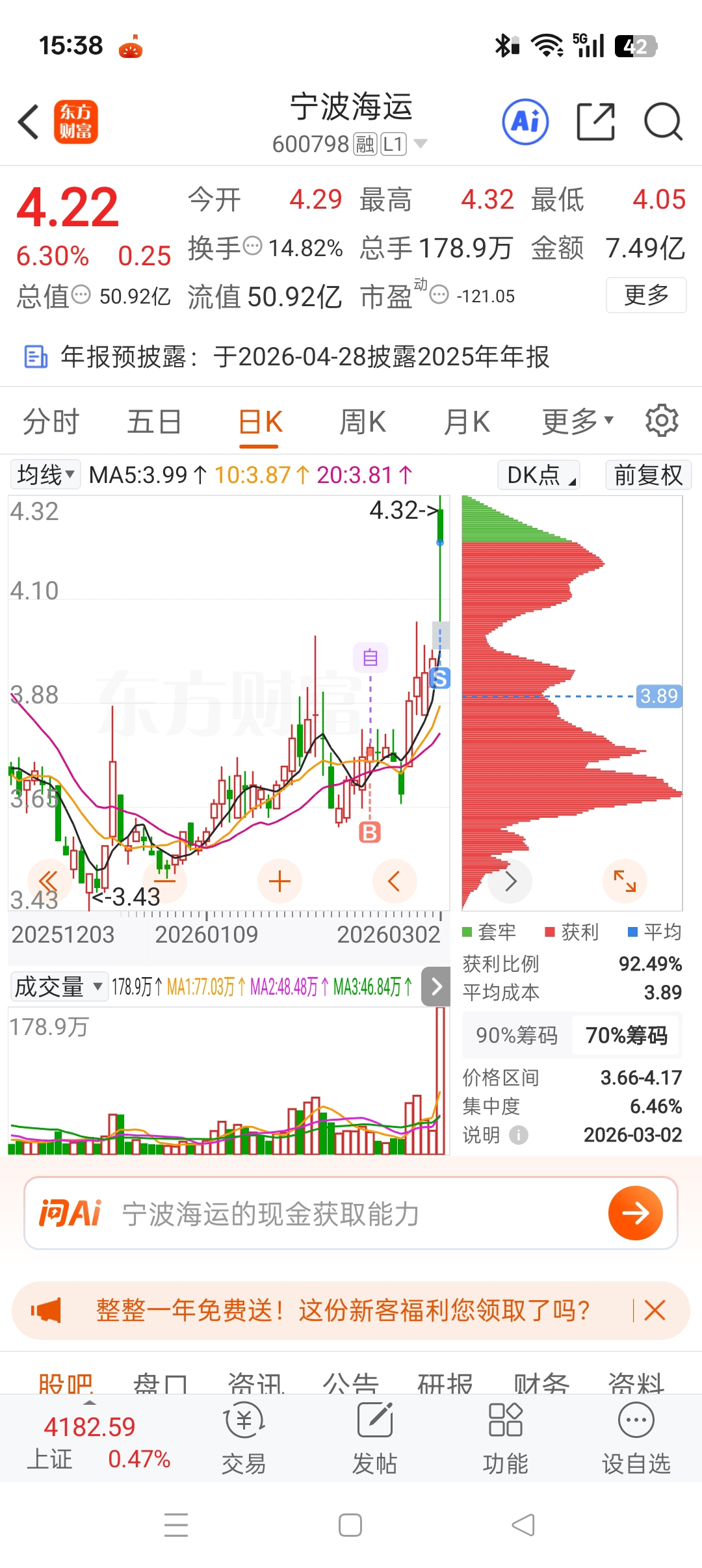 $宁波海运(SH600798)$ 明天看看回落多少,反正这星期要跌跌不休喽,跌到位我再接回来,