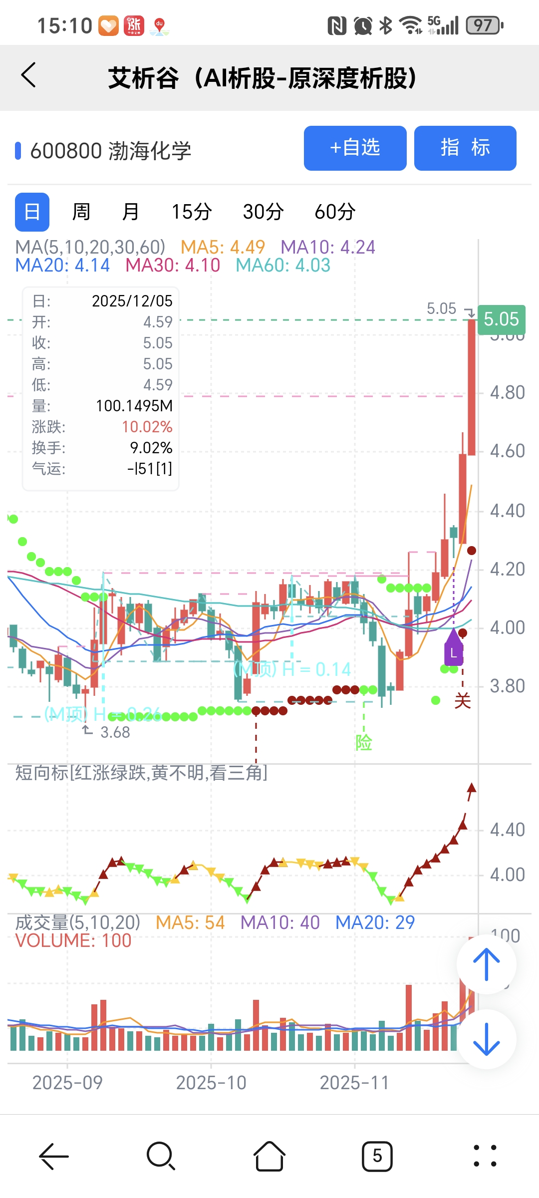 红绿小圆点是艾析谷的量化指标-超级短趋线,是趋势跟踪+突破类的量化指标,完全免费。