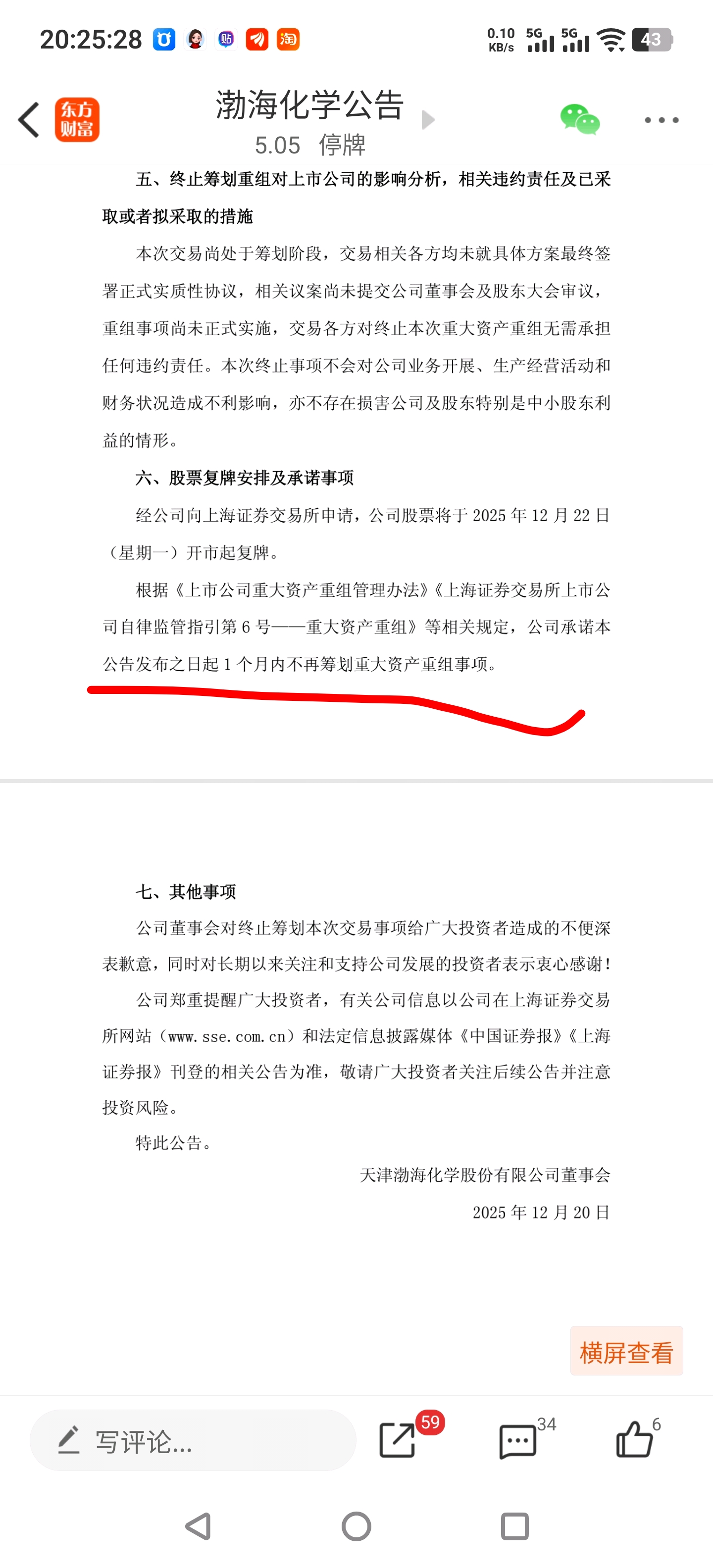 $渤海化学(SH600800)$ 公告写的一个月内不进行重组,一个月后可能又筹划了有预期参考梦天家居!